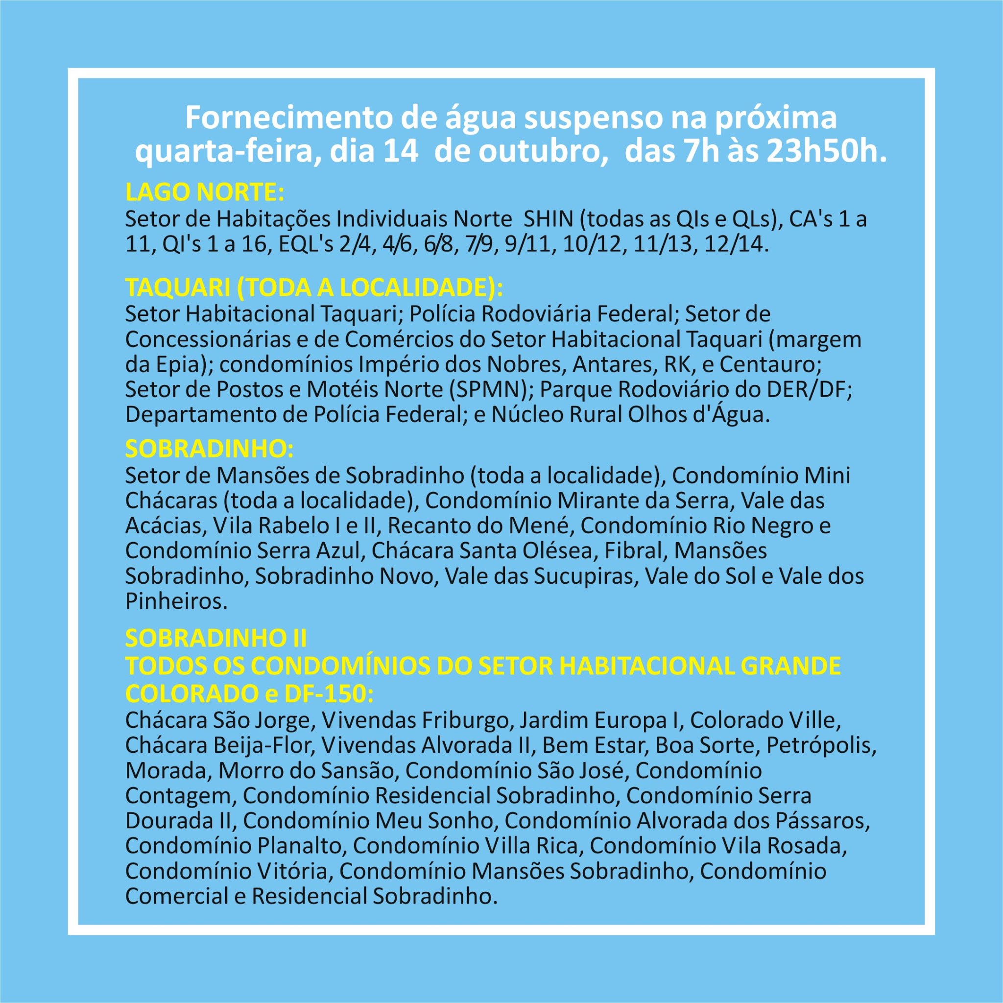 A CAESB fará, na próxima quarta-feira, 14 de outubro,
